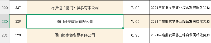 近日,厦门市思明区2024年度商贸流通业企业扶持资金经政府网站公示后正式发放。联美公司权属单位厦门联美商贸有限公司凭借扎实的经营表现,荣获2024年度批发零售业综合发展质效奖励,并获得7万元资金扶持。
